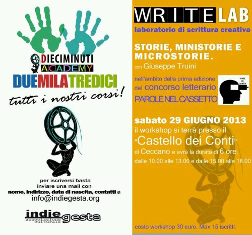 Aperte ufficialmente le iscrizioni al workshop di scrittura creativa “Storie, Ministorie e Microstorie” ideato da IndieGesta e dalla Dieciminuti Academy nell’ambito della prima edizione del concorso letterario Parole nel Cassetto.