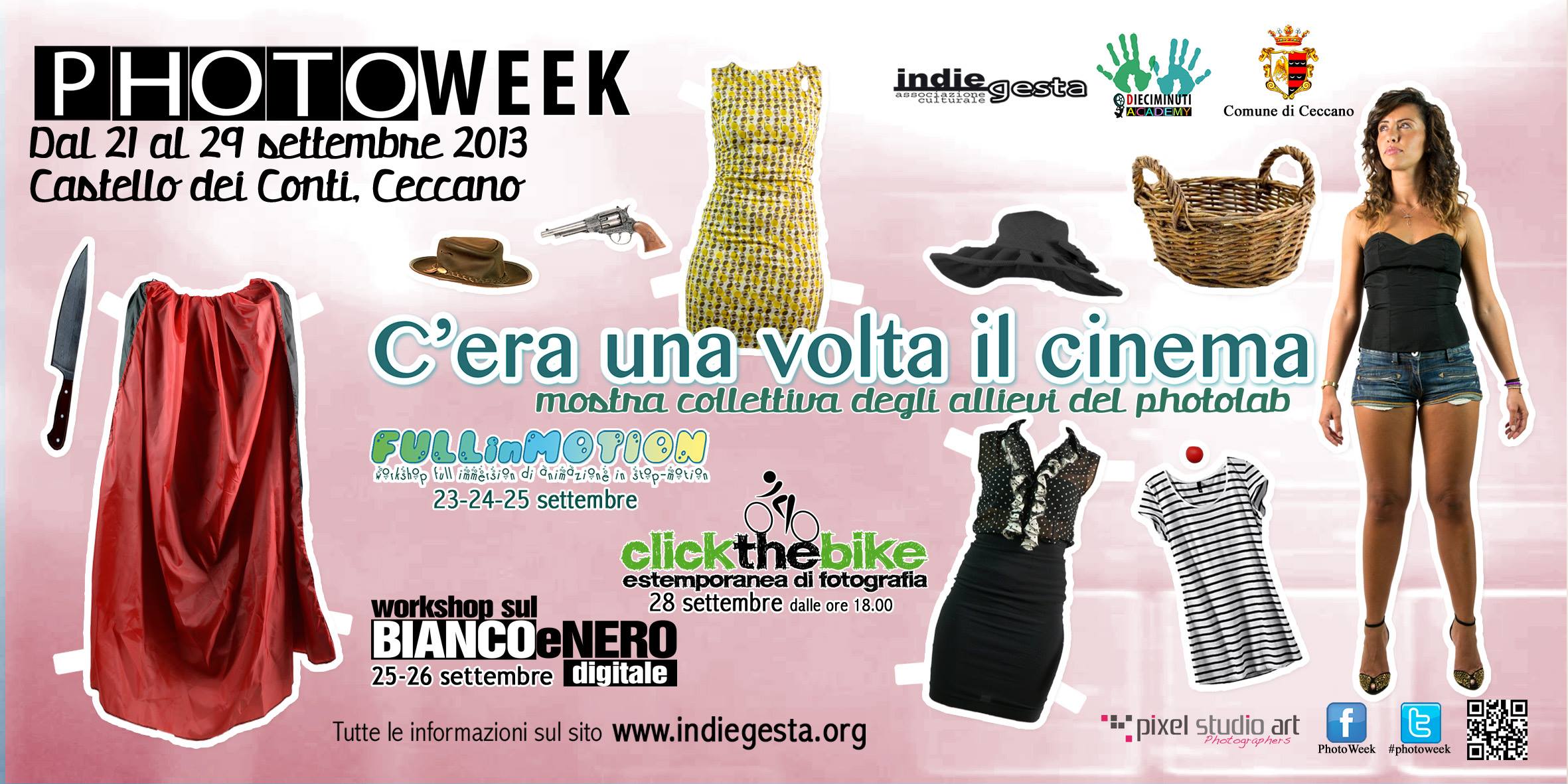 L’evento, che prenderà il via sabato 21 settembre alle ore 18 con l’inaugurazione della Mostra “C’era una volta il Cinema” realizzata dai 47 allievi del “PhotoLab”, il laboratorio di fotografia promosso da IndieGesta nell’ambito dei laboratori della Dieciminuti Academy, si protrarrà per tutta la settimana nella splendida cornice del Castello dei Conti di Ceccano.