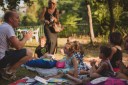 C’erano i bambini, tantissimi, divertiti dalla musica di Vittorio Oi e dalle letture animate di Roberta Cassetti. Si sono presi uno spazio, l’area giochi, che è loro e che per una sera è stato vissuto anche di notte, senza il caldo del sole a picco sui giochi, con le famiglie, genitori, nonni, fratelli e sorelle allegramente seduti sulle panchine, sul prato, su tutti gli spazi liberi che c’erano. C’erano i ragazzi e le ragazze, non solo di Ceccano, che cercavano qualcosa la cui essenza non fosse solo gastronomia ma soprattutto la musica, finalmente! C’erano persone di tutte le età, che non necessariamente erano lì per i concerti, erano lì perché c’era una bella atmosfera di convivialità, dove per qualche ora non era necessario guardare in basso, verso gli schermi degli smartphone, ma tutti serenamente guardavano in alto, la luna ancora un po’ rossa, o di fronte, gli occhi di chi avevano intorno.