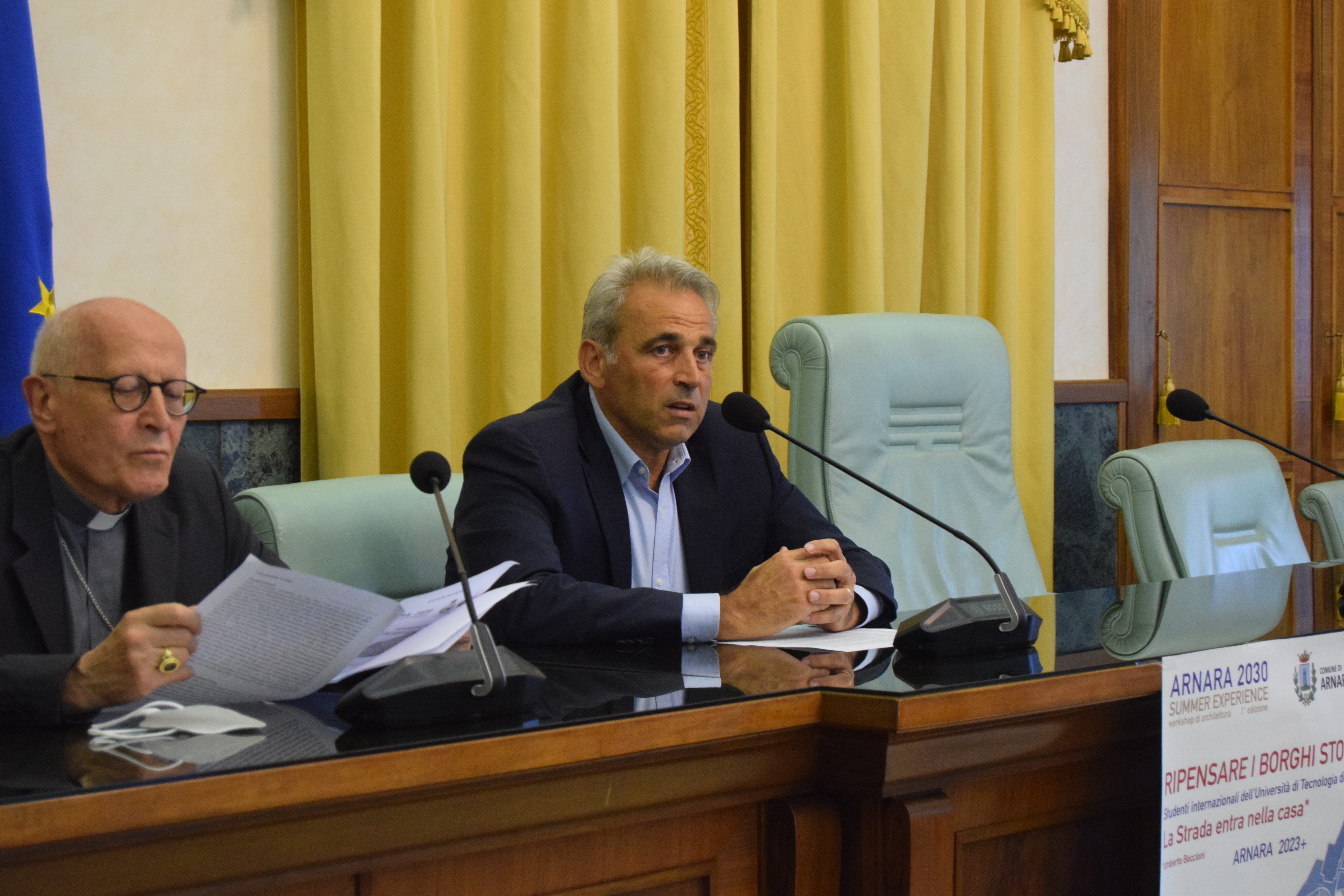 Successivamente è intervenuto il Vescovo di Frosinone Ambrogio Spreafico: “Come Diocesi abbiamo accolto con piacere questa proposta del Comune di Arnara perché, rispetto a tante altre, porta con sé un’idea e una visione del futuro, ed è questo che ci ha convinti subito sia ad essere partner del progetto che ha risposto al Bando Borghi Storici, sia ad accogliere i giovani studenti dell’Università di Vienna nei locali della Parrocchia di San Nicola. Il futuro si costruisce se si riesce a mettere da parte i campanilismi tra comuni e lavorare insieme a un’idea condivisa di cui tutti potranno beneficiare, soprattutto le nuove generazioni”.