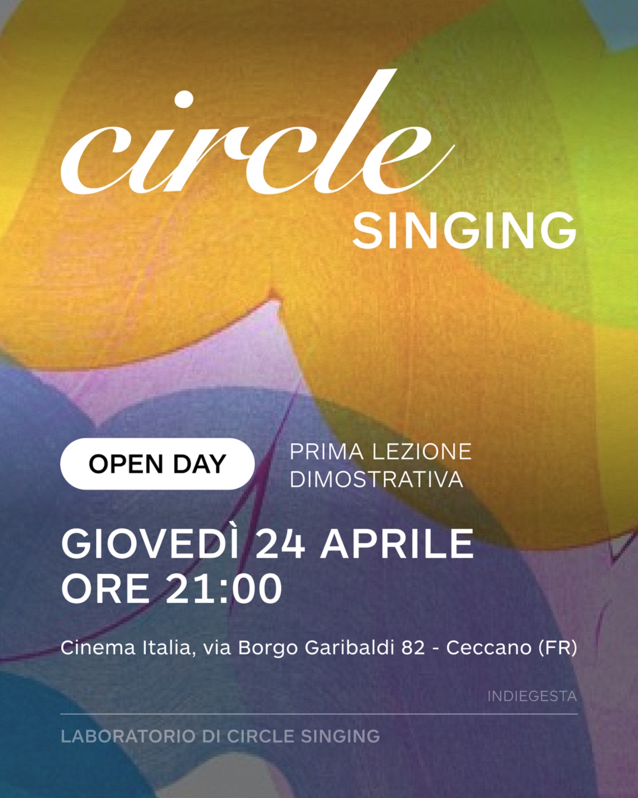 Avrà luogo giovedì 24 aprile, alle 21, al Cinema Italia, la prima lezione dimostrativa del laboratorio di Circle Singing curato da Giorgia Parmeni. Qui il modulo per prenotarsi gratuitamente: https://forms.gle/qPrYWMQE5sd4bJccA